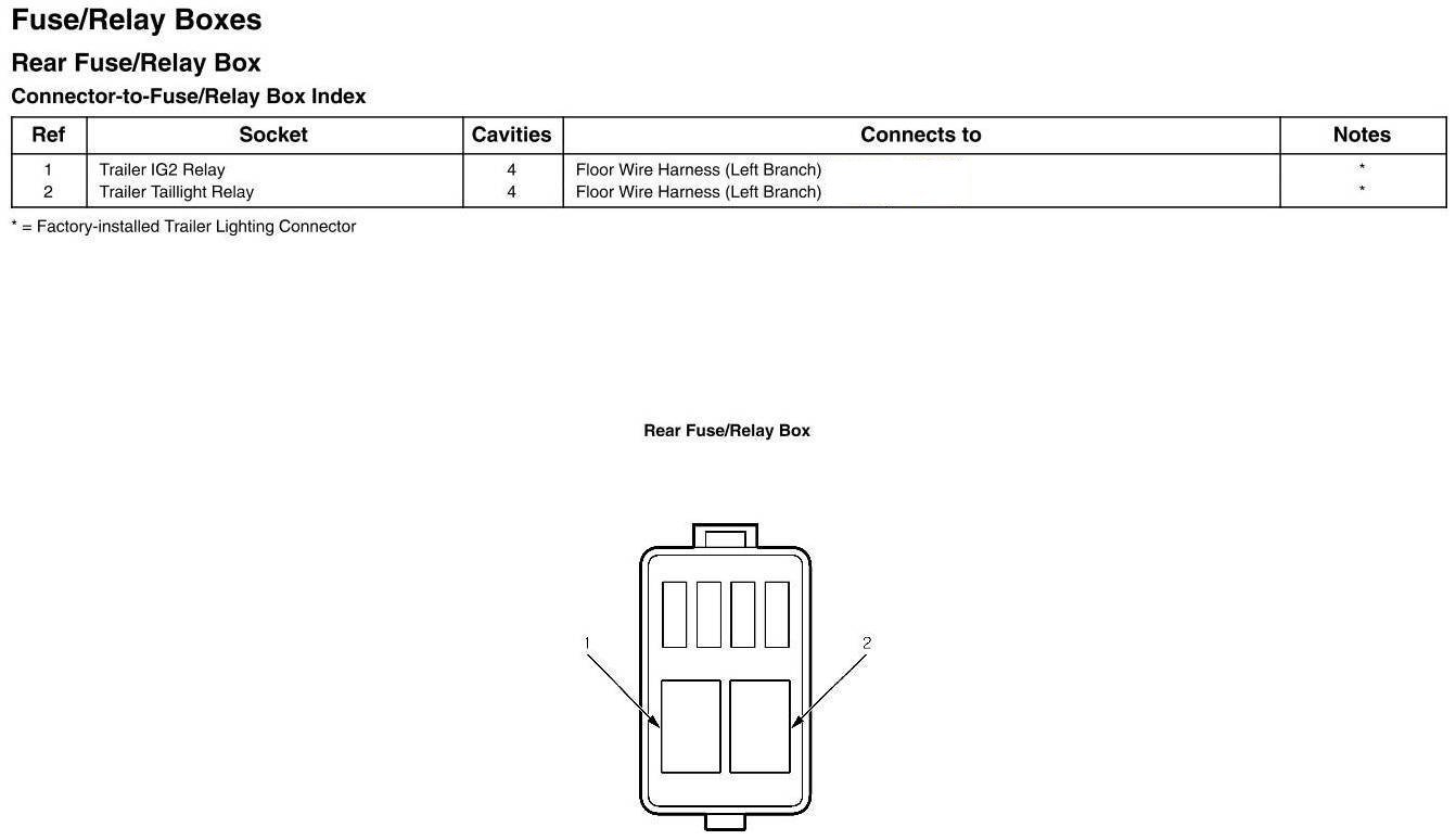 Rear Fuse/Relay Box - Connector-to-Fuse/Relay Box Index