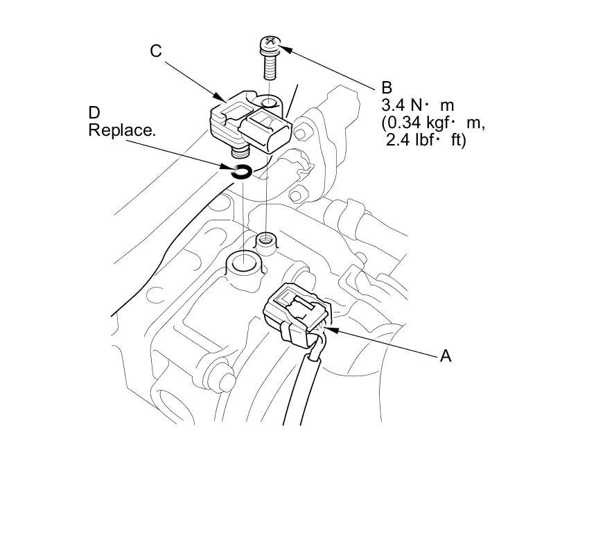 Install the parts in the reverse order of removal with a new O-ring (D).