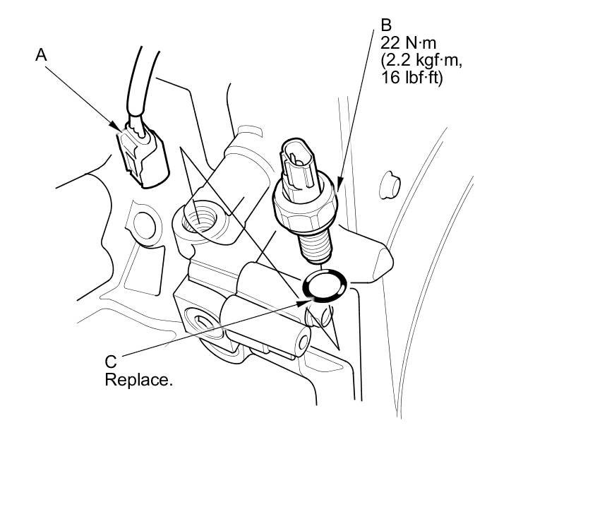 4. Install the rocker arm oil pressure sensor with a new O-ring (C).