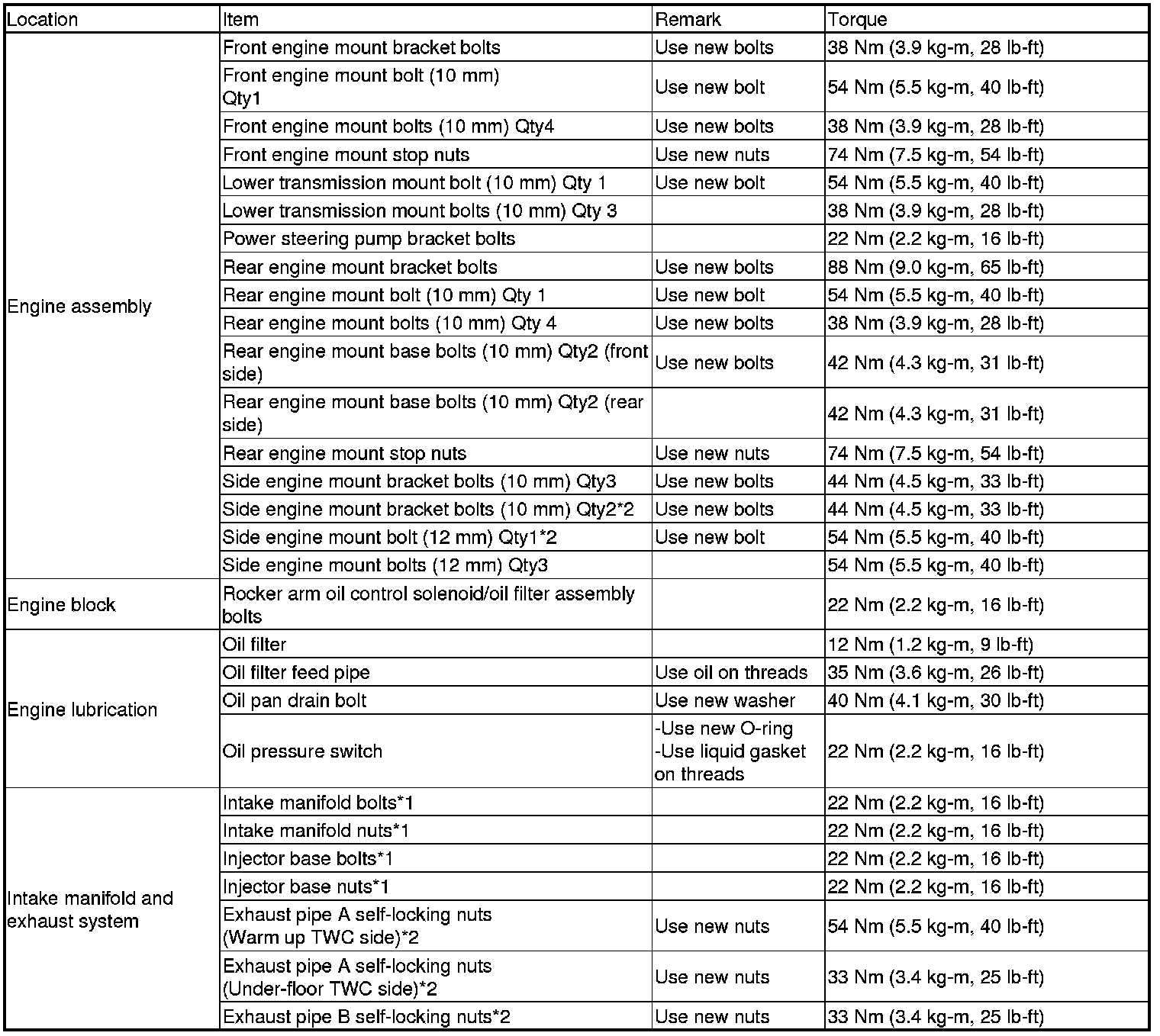 *2: Follow the S/M procedures closely for torque, sequence, and special steps.