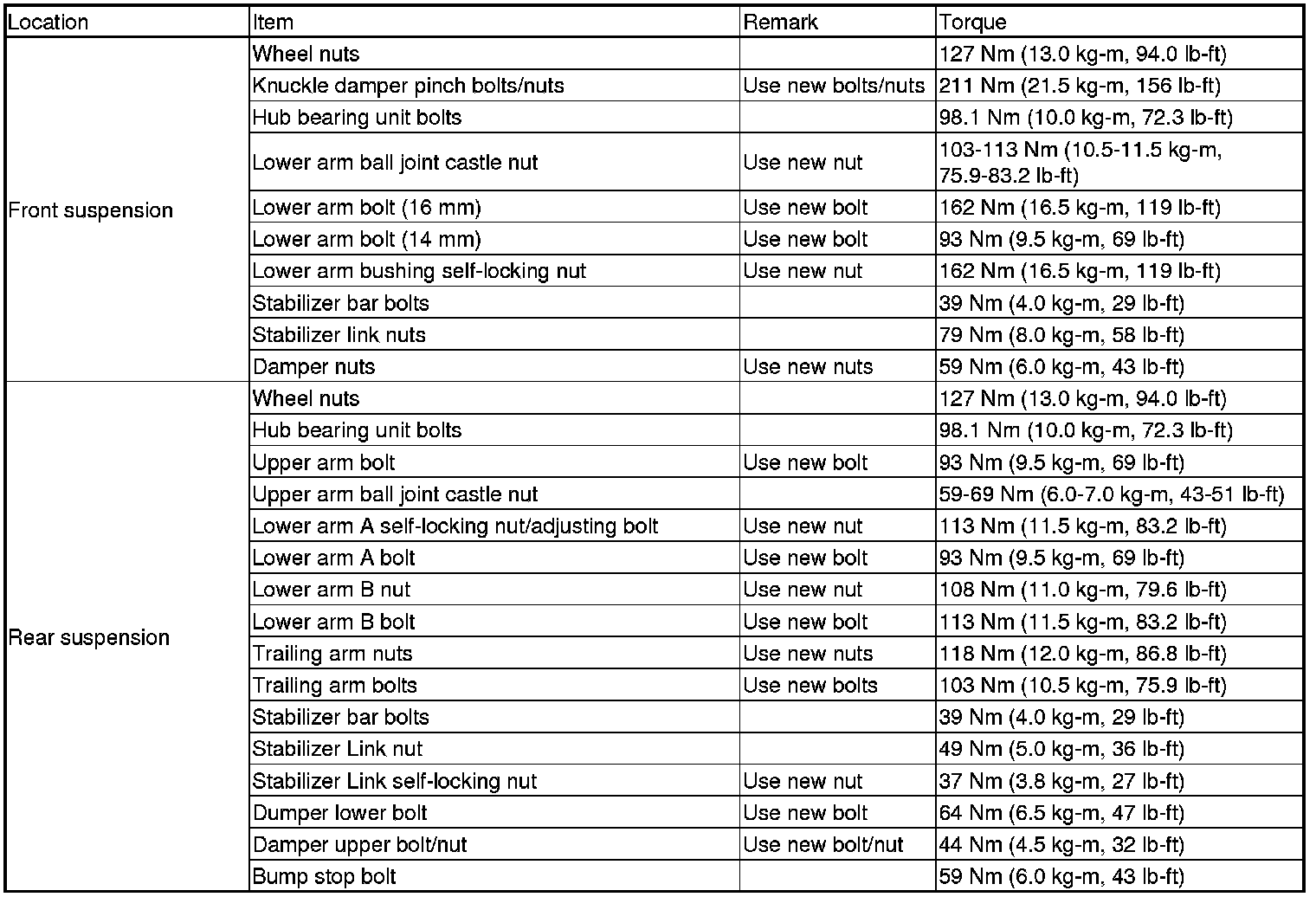 *Refer to the each S/M section for the bolts/nuts not indicated here.