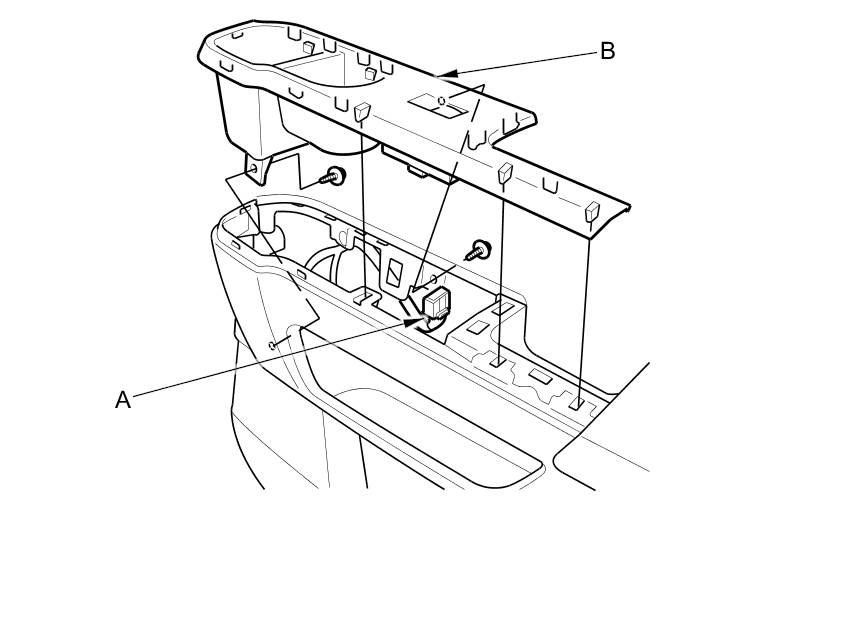 2. Remove the screws and disconnect the connector (A) from the rear power window switch (B), then remove the switch assembly from the door panel.