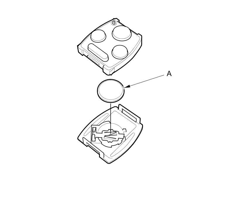 4. Replace the transmitter battery (A) with a new one (CR1616), and try to lock and unlock the doors with the transmitter by pressing the lock or unlock button at least 10 times.