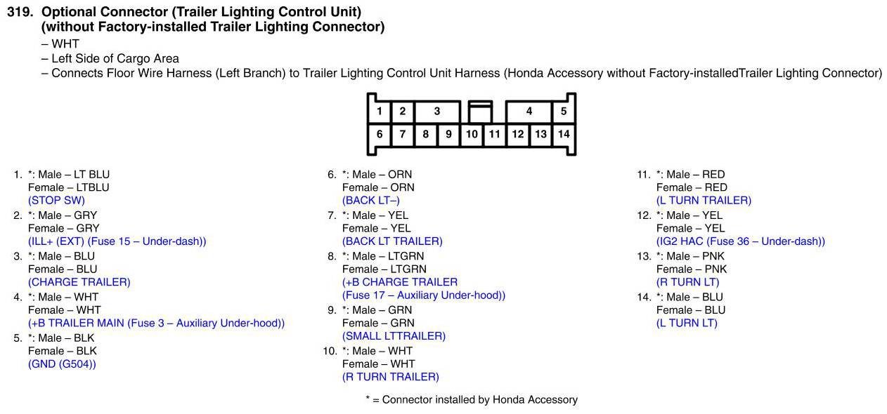Optional Connector (Trailer Lighting Control Unit) Connector View (Without Factory-Installed Trailer Lighting Connector)