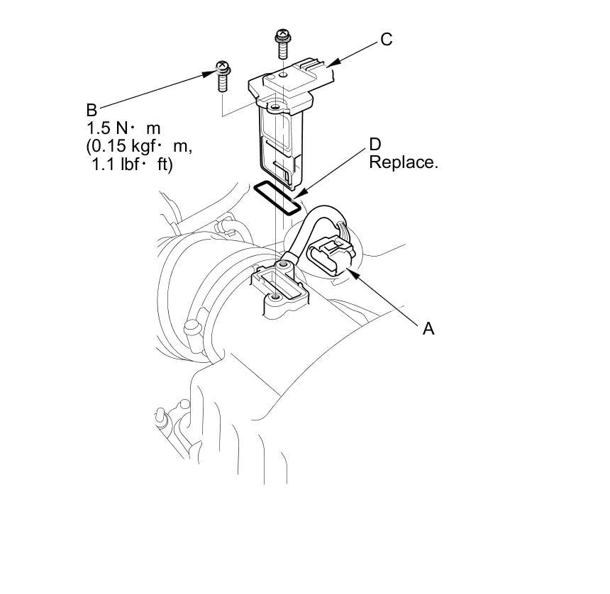 4. Install the parts in the reverse order of removal with a new O-ring (D).