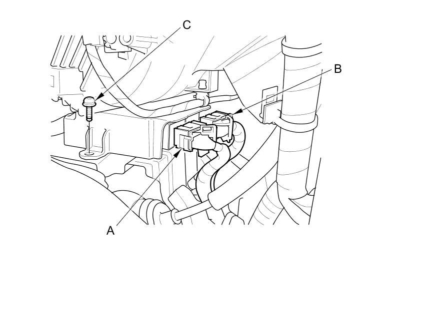 3. Disconnect SRS unit connectors A (39P) and B (39P). Remove the TORX bolt (C) using a TORX T30 bit.