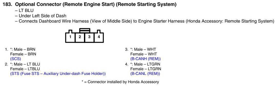 Optional Connector (Remote Engine Start) Connector View (Remote Starting System)
