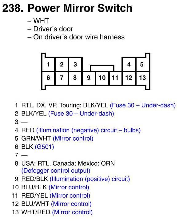 View 238 - Power Mirror Switch Connector View