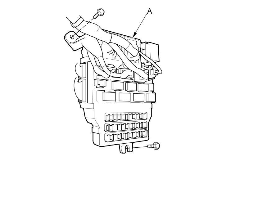 3. Disconnect the connectors from the fuse side of the under-dash fuse/relay box (A).