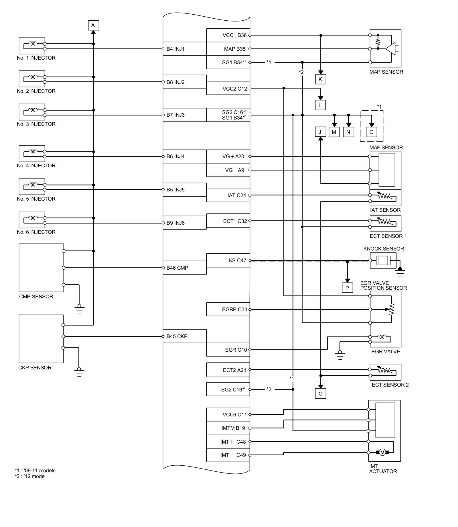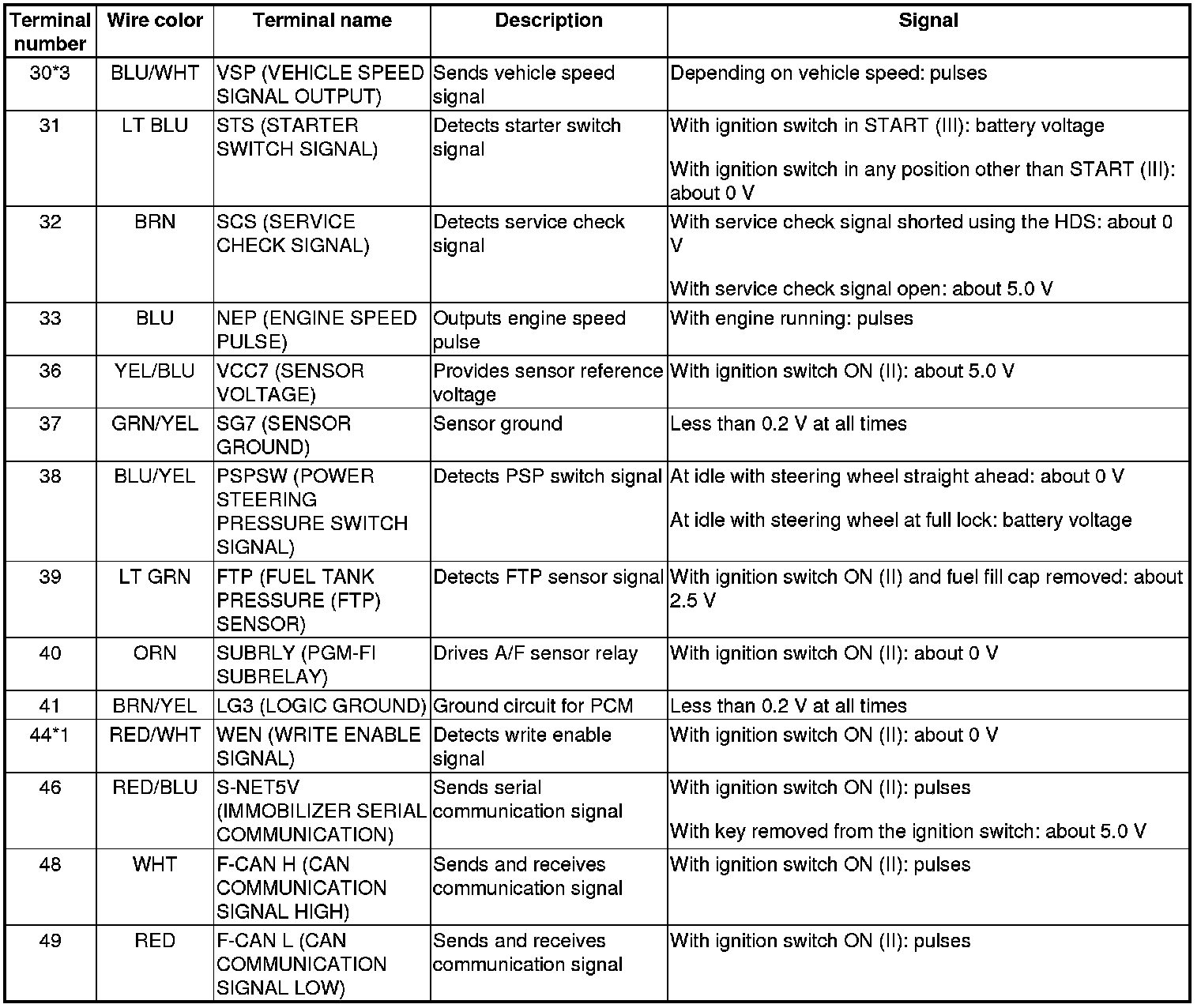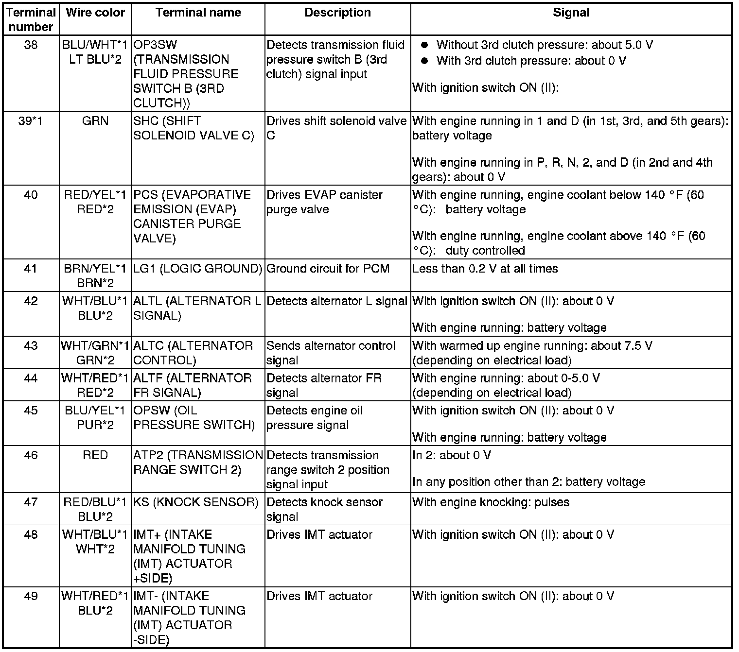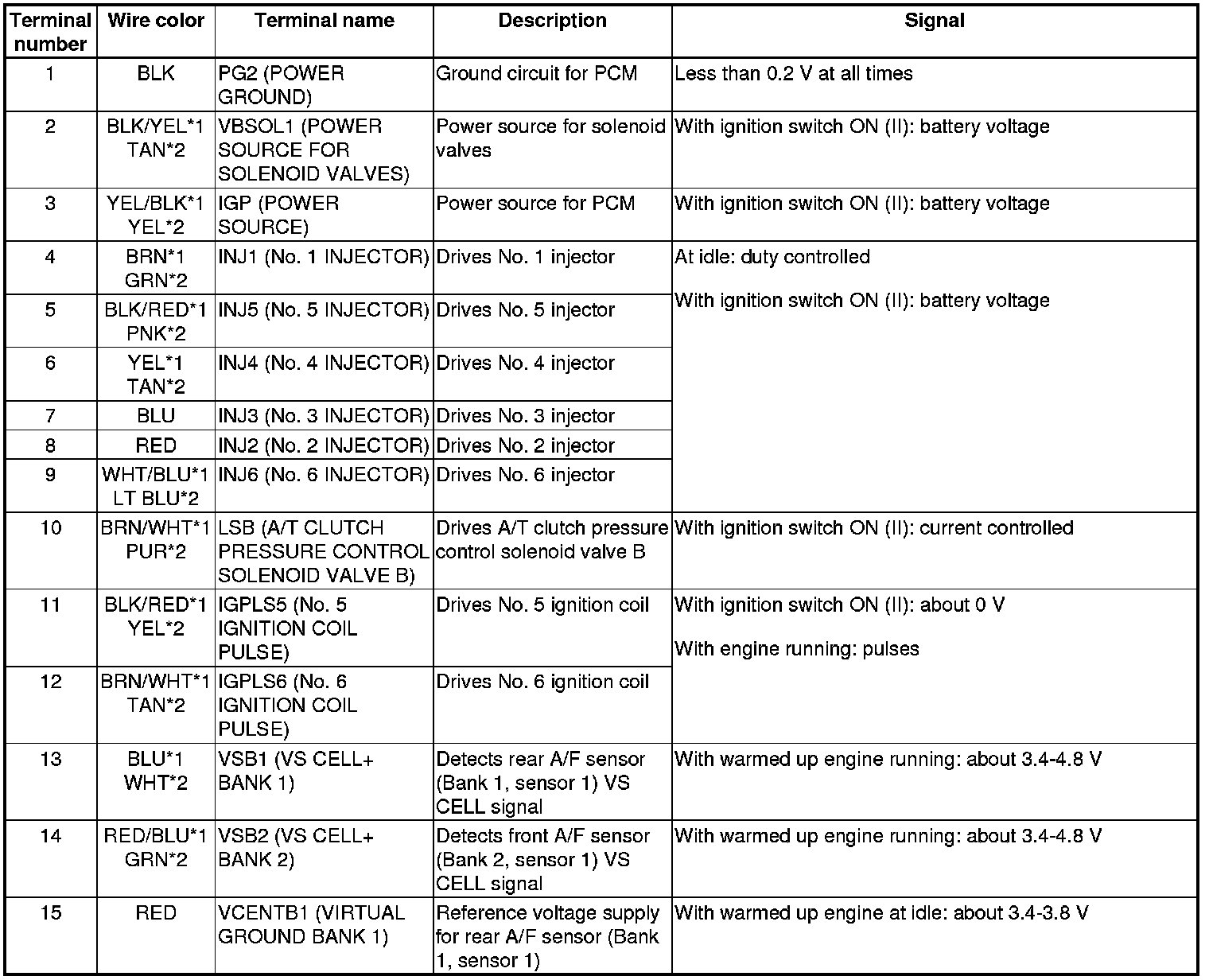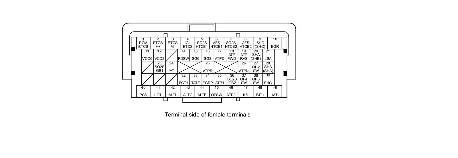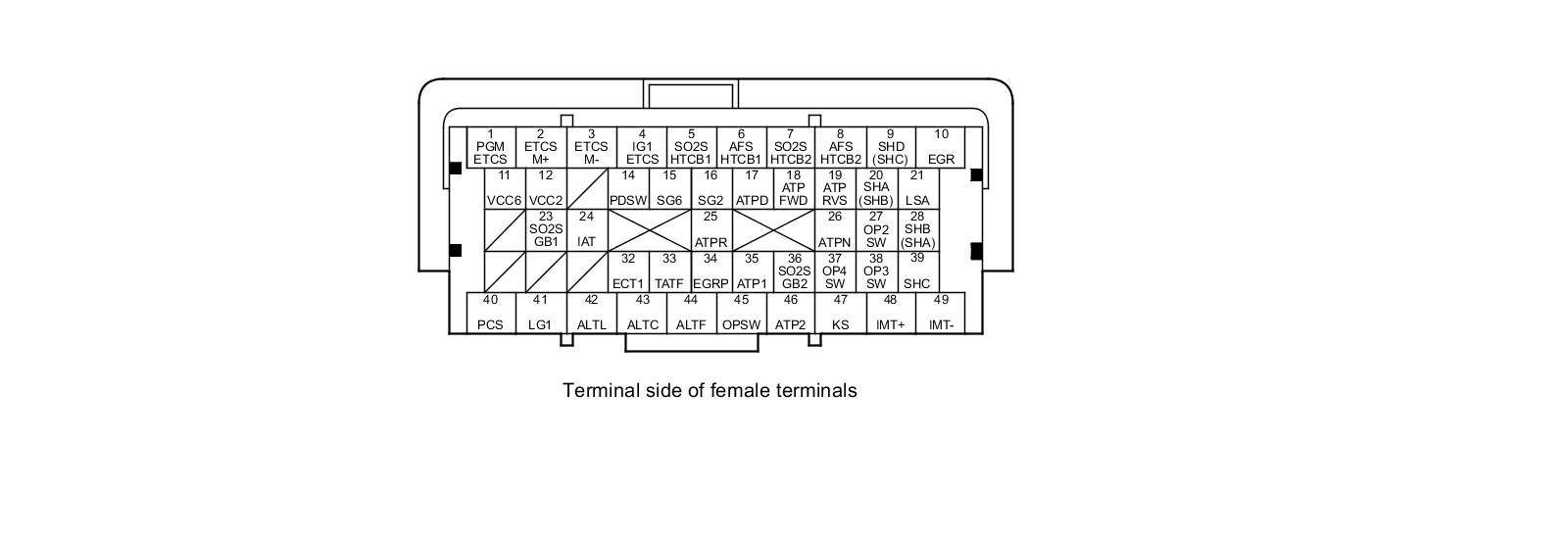 PCM Inputs and Outputs at PCM Connector A (square) (49P)