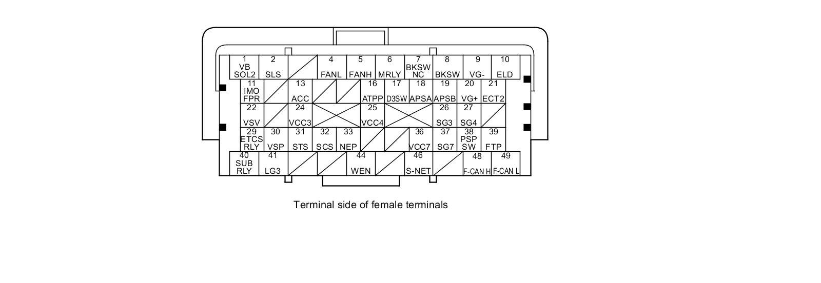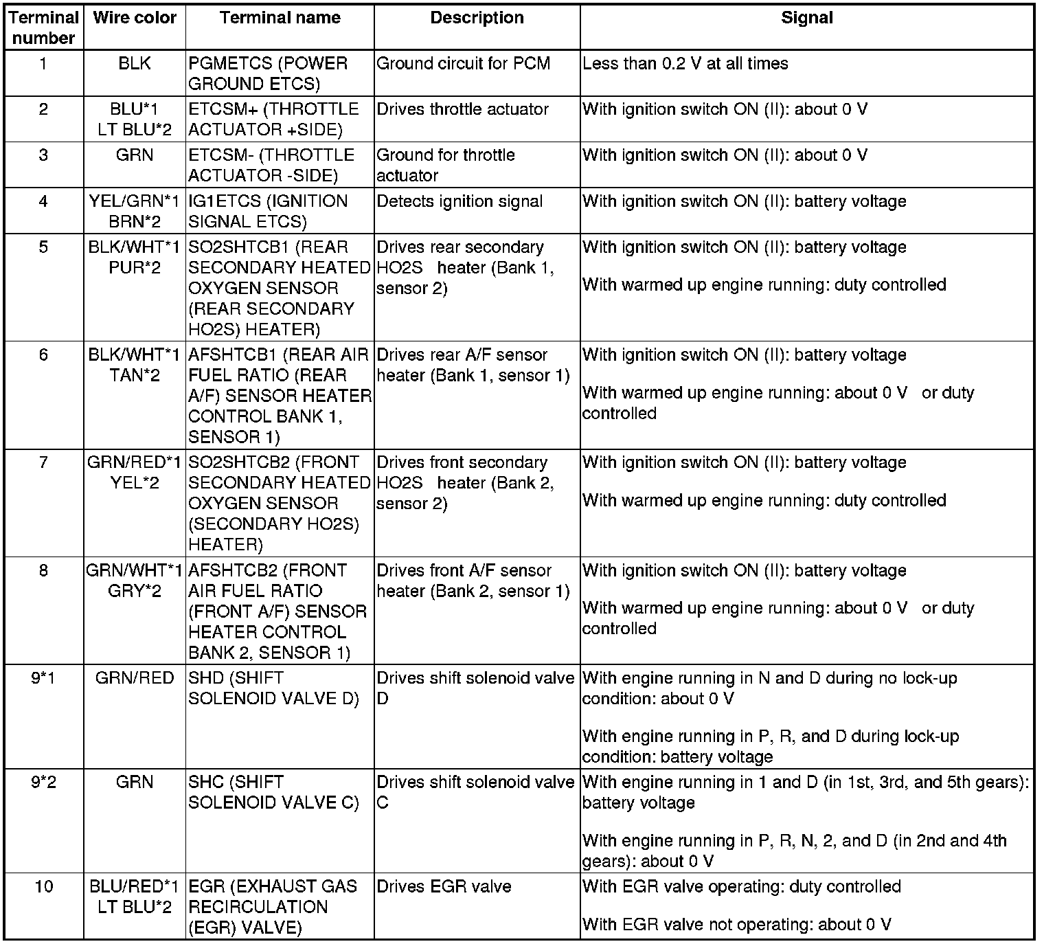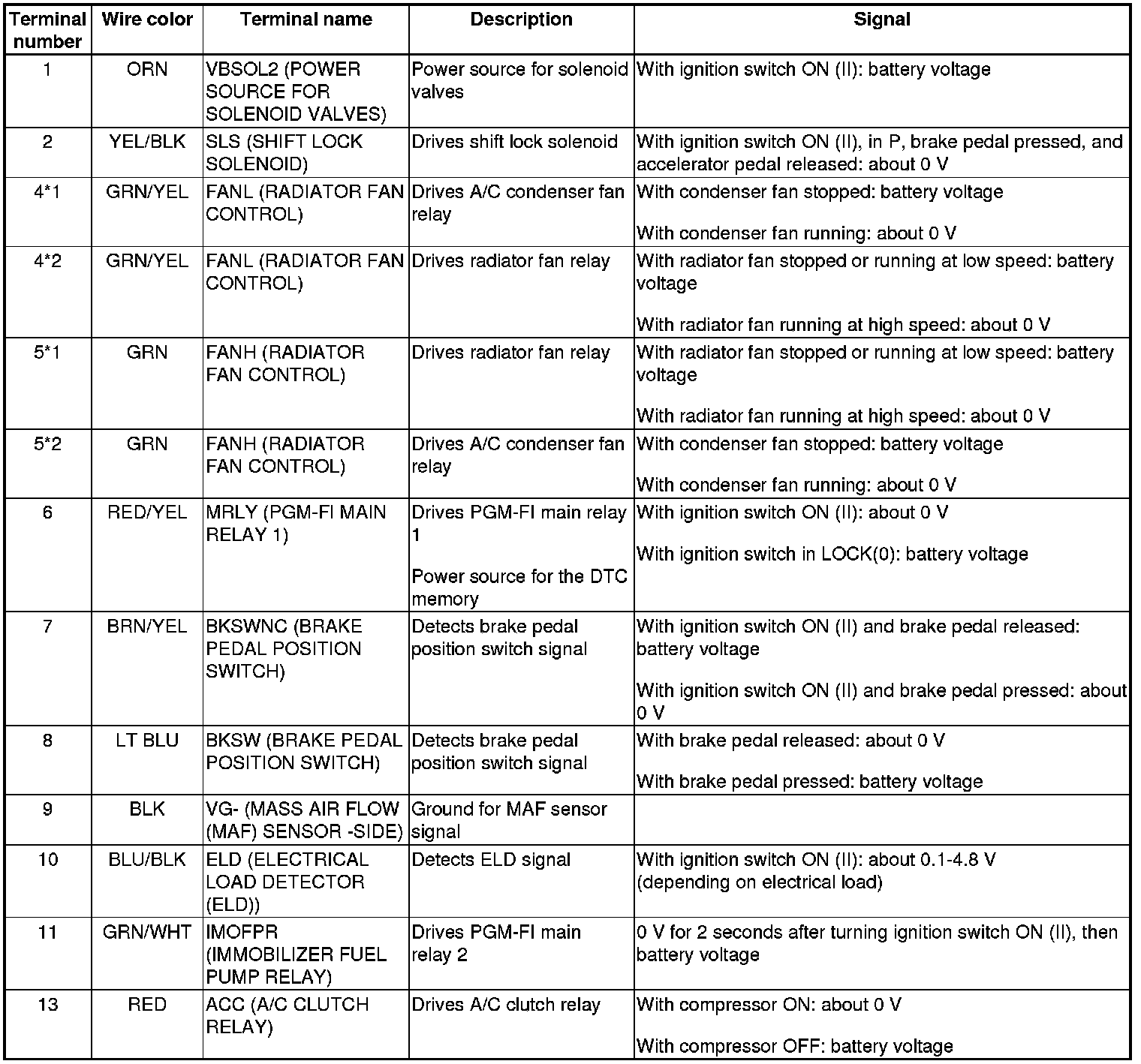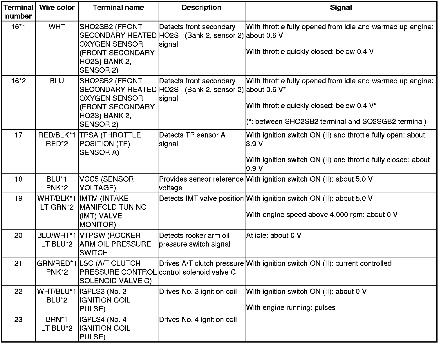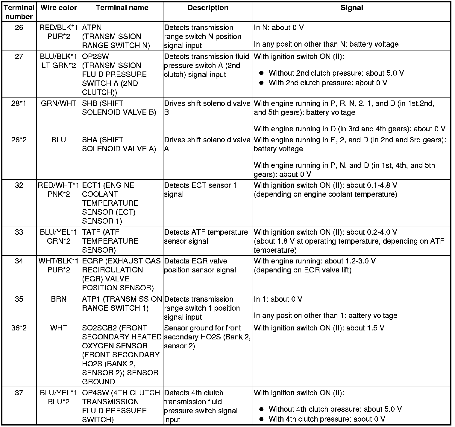 PCM Inputs and Outputs at PCM Connector A (square) (49P)