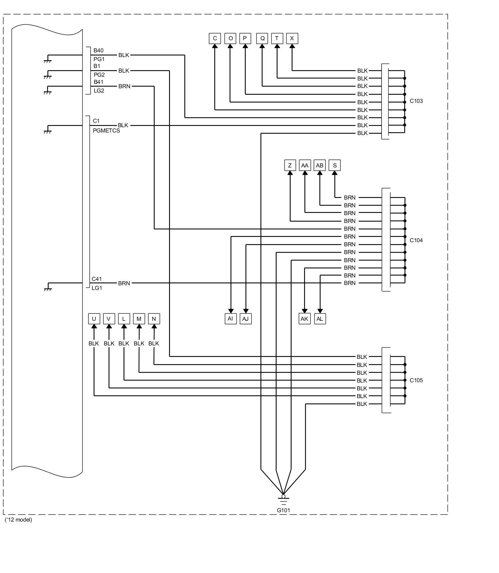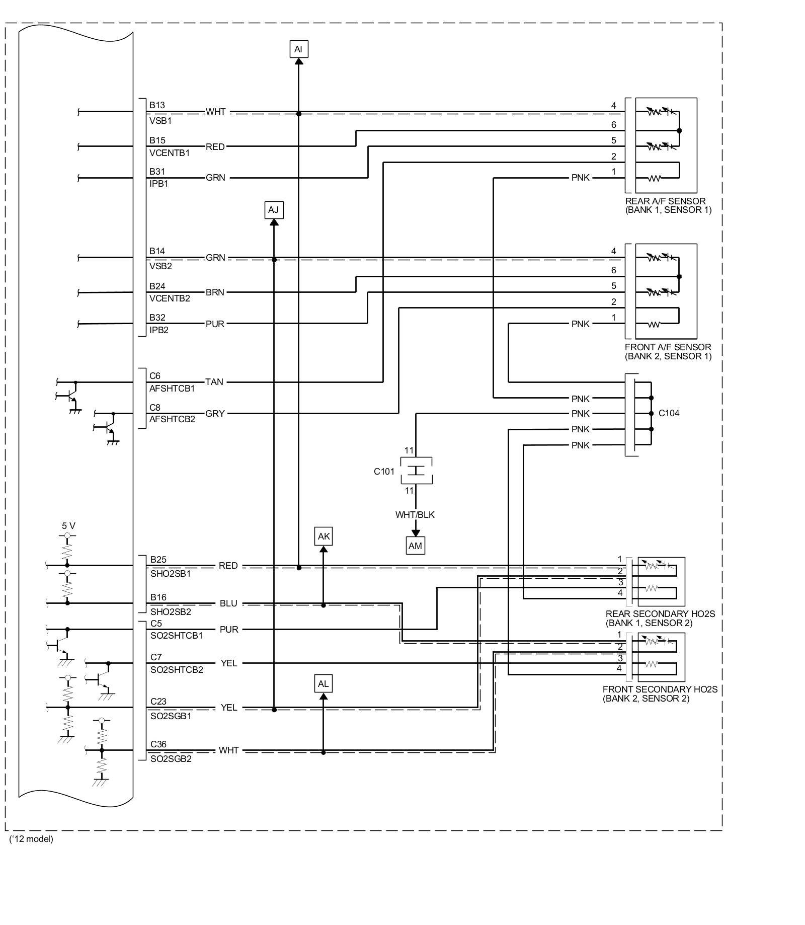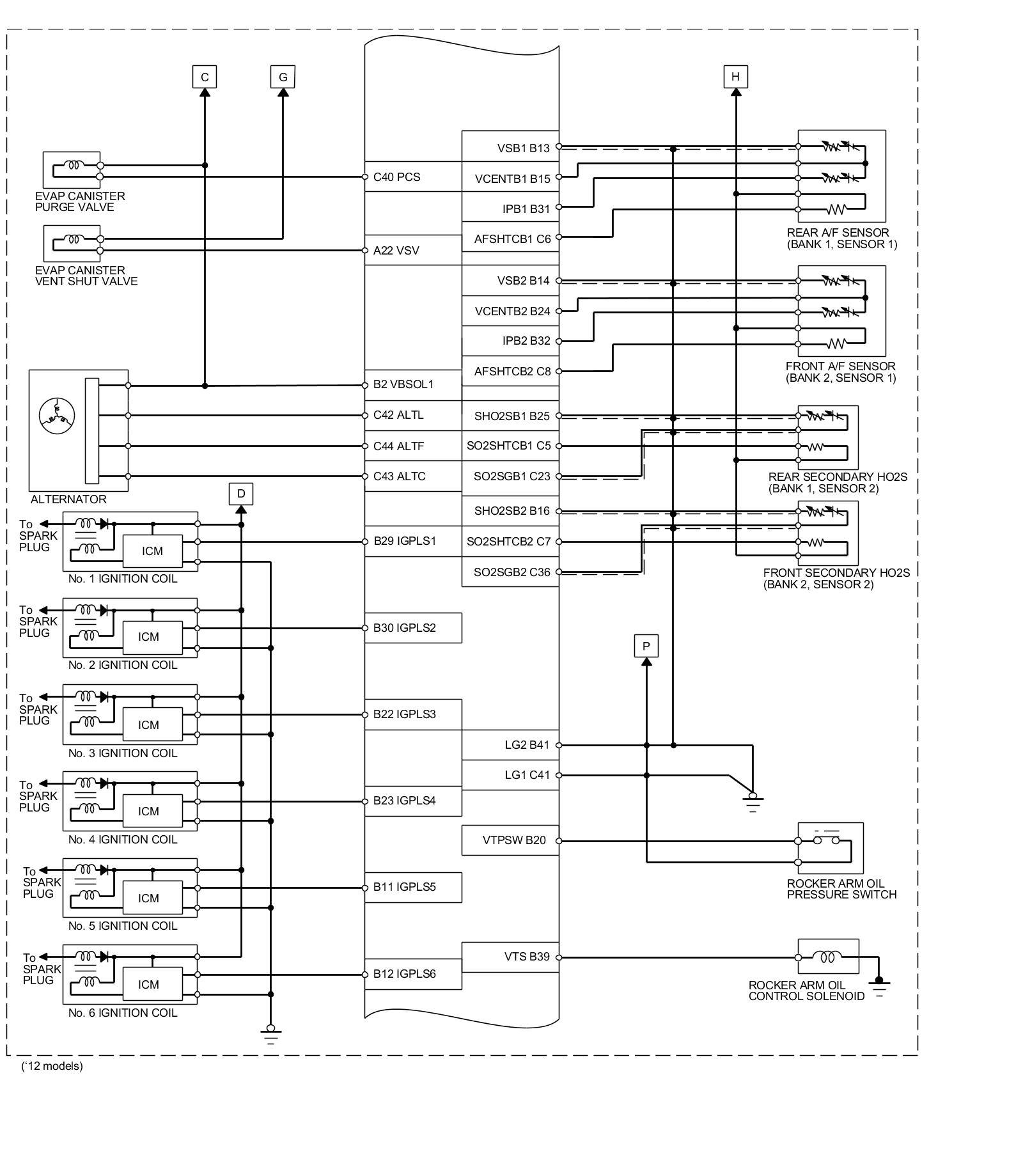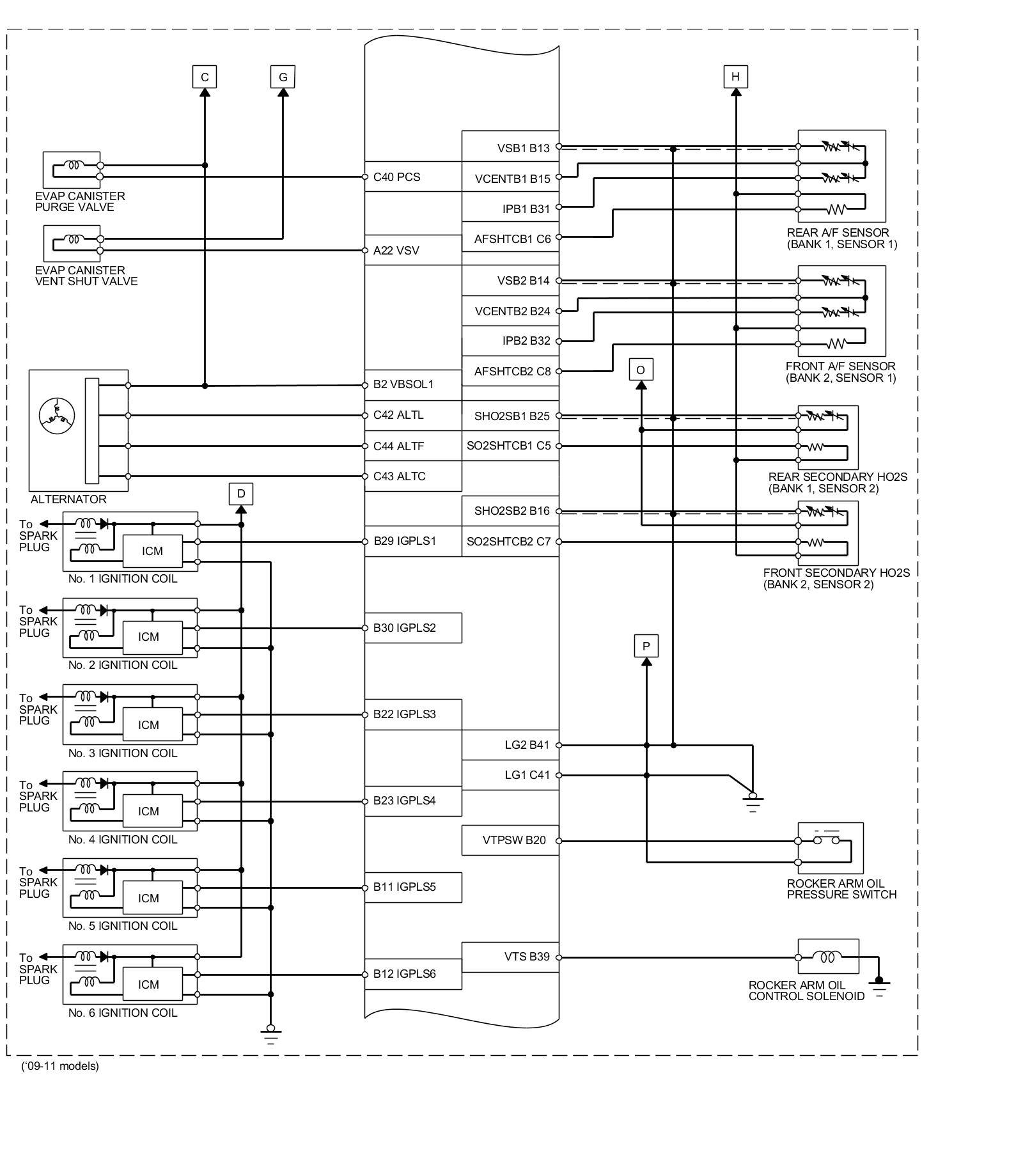 PCM Inputs and Outputs at PCM Connector C (circle) (49P)