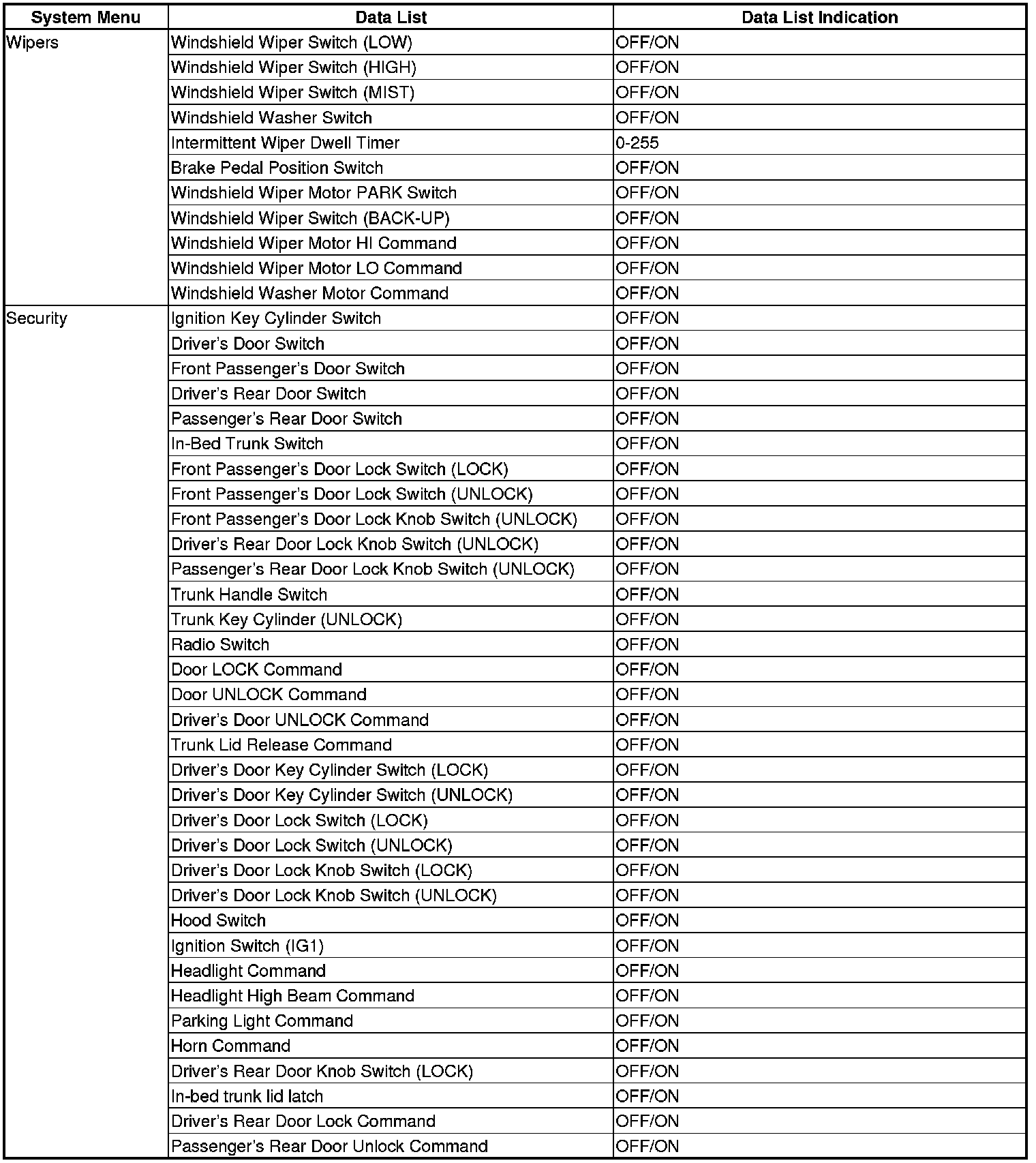 - The multiplex integrated control unit (MICU), relay control module, and gauge control module receive the door lock switch message.