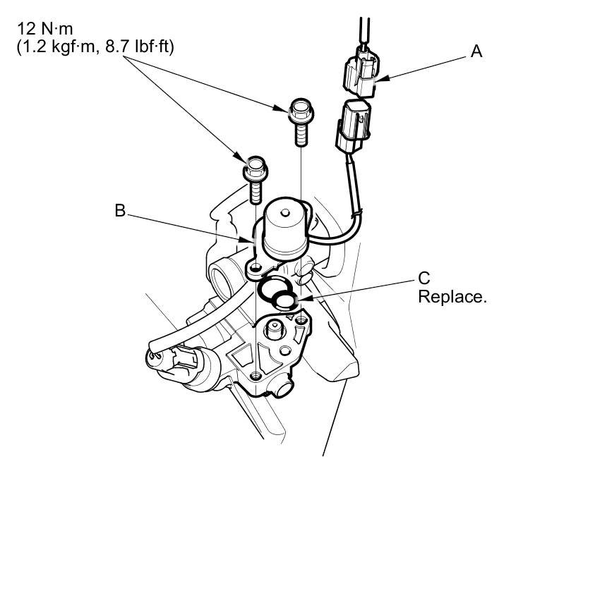 3. Install the parts in the reverse order of removal with a new O-ring (C).