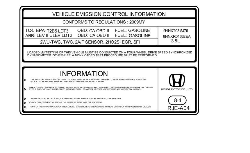 CONFORMS TO REGULATIONS: 2009MY