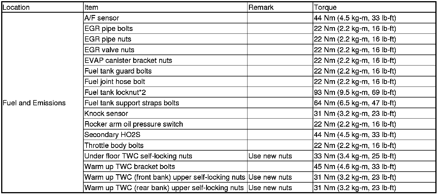 Torque Specifications
