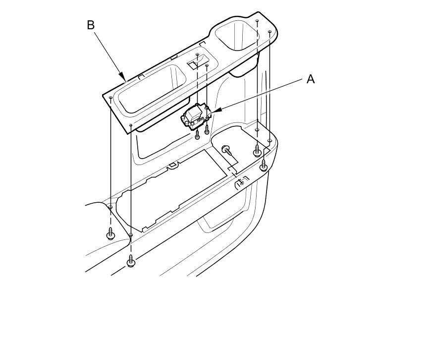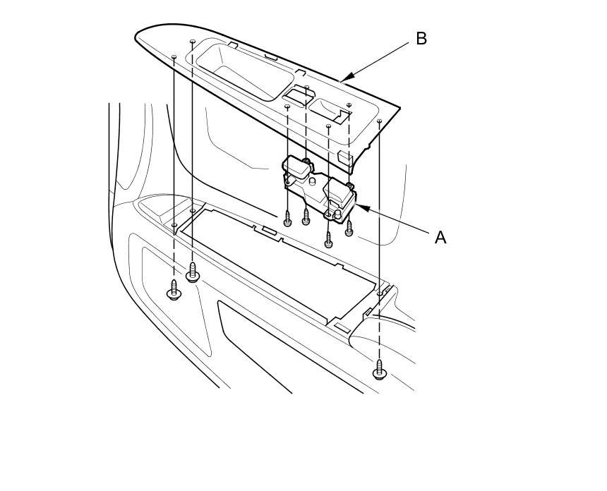 2. Remove the four mounting screws, then remove the power window switch (A) from the switch panel (B).
