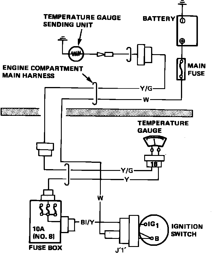 Fig. 34 Coolant Temperature Gauge Wiring Circuit. 1983 Civic: