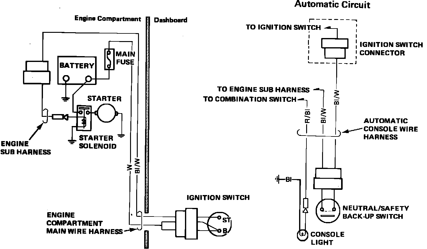 Fig. 47 Starter System Wiring Circuit. 1983 Civic: