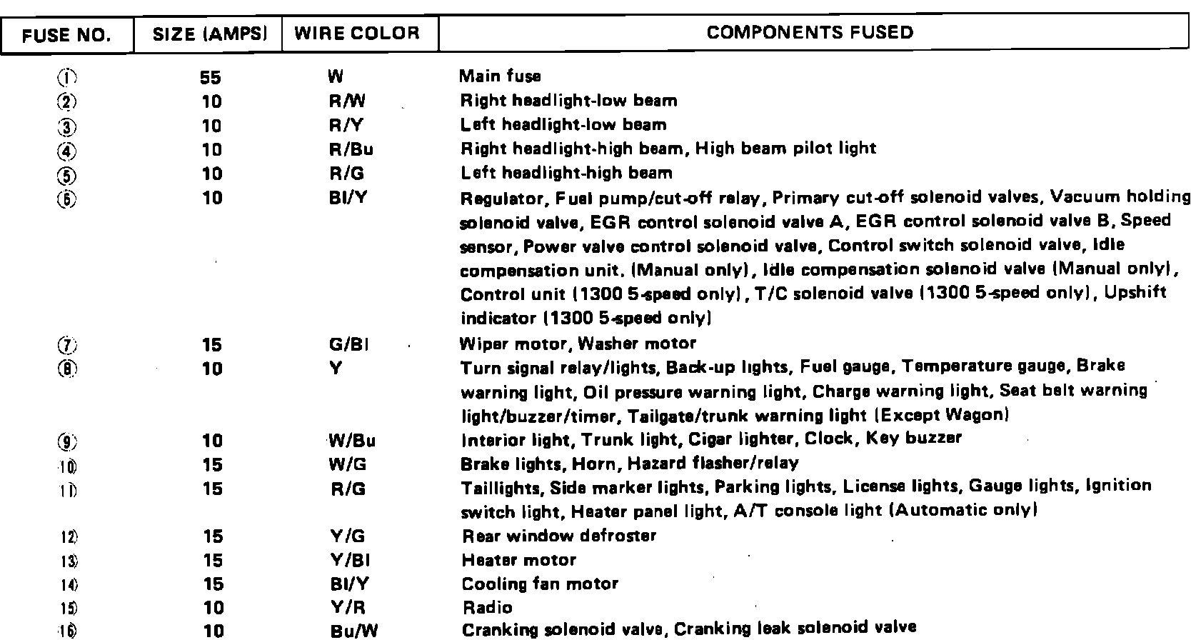 Fig. 2a Fuse Panel (Part 1 of 2). 1983 Civic: