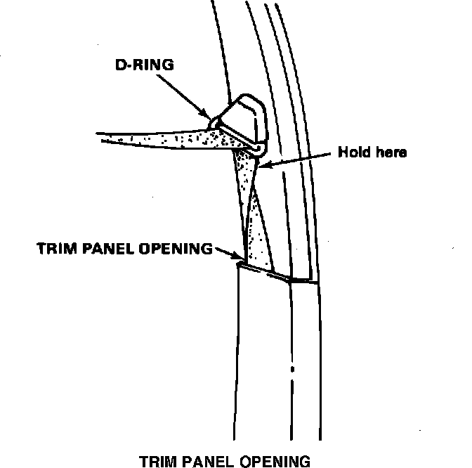 4. If the belt is twisted between the D-ring and the trim panel opening, hold the belt just above the twisted section so it will not pass through the D-ring, and pull the belt out fully.