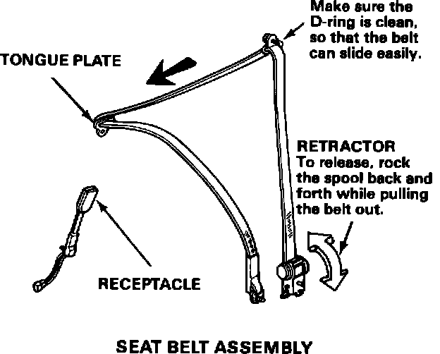 The seat belts should always be kept clean and dry; wet or damp belts can cause belt rewinding problems.