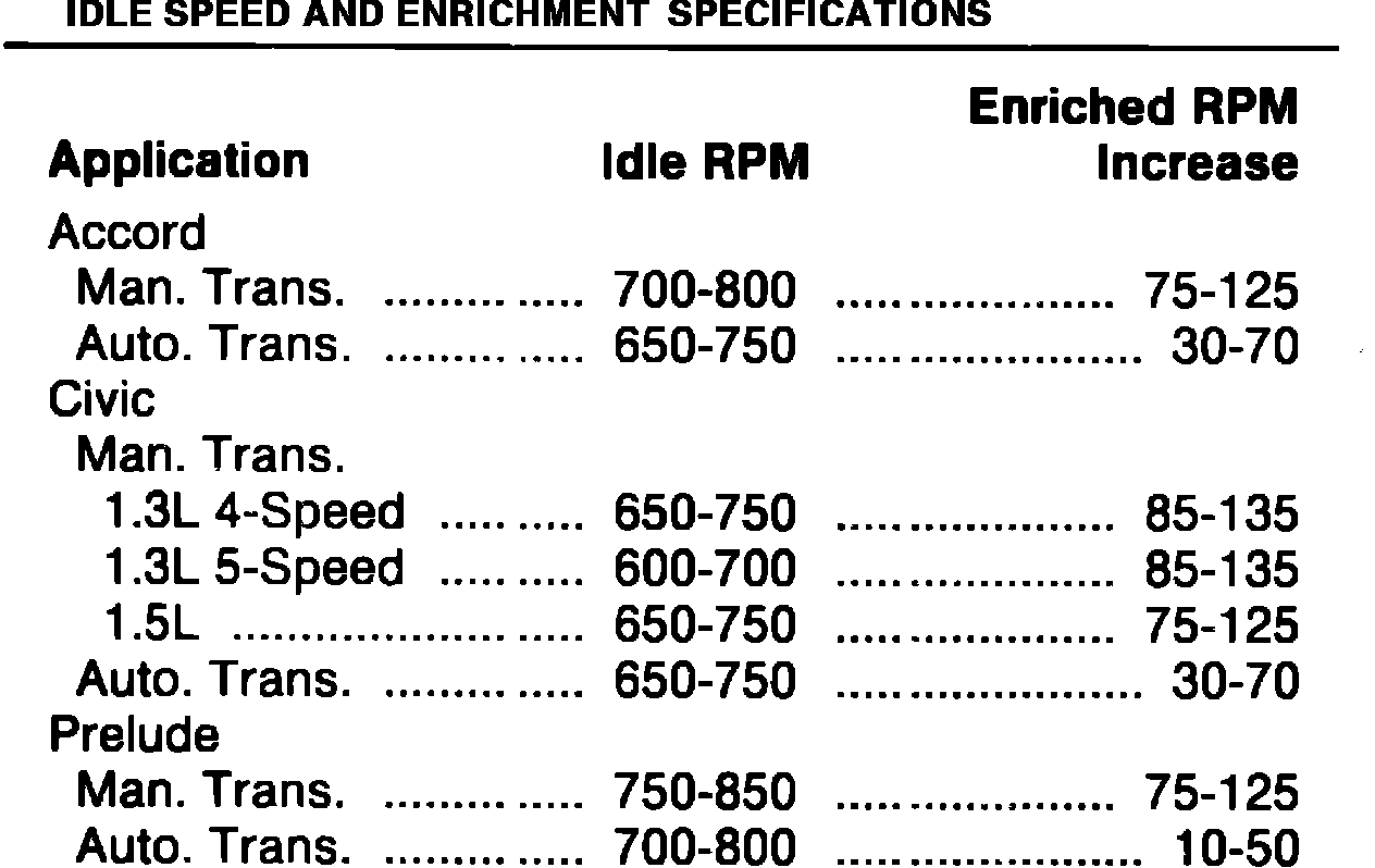 Fig. 2 Idle speed and enrichment specifications: