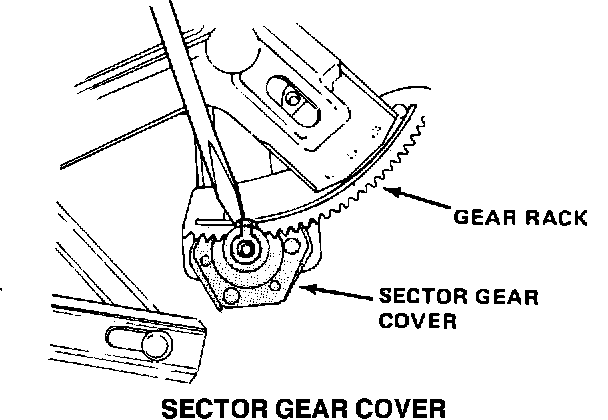 2. With a slot head screwdriver, pry up on the sector gear cover to create a 0.5 mm clearance between the cover and the gear rack.