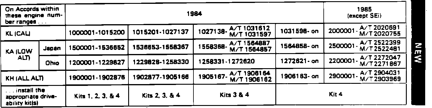 Cold Start/Driveability Improvements for '84-'85 Accords