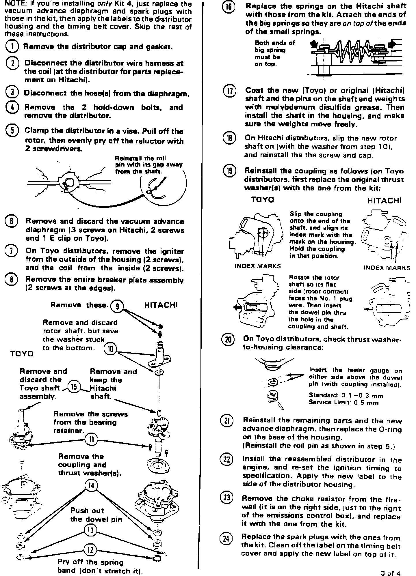 Install cold start/driveability kits as necessary, according to the car's engine number (refer to the engine number ranges). Installation instructions are included.