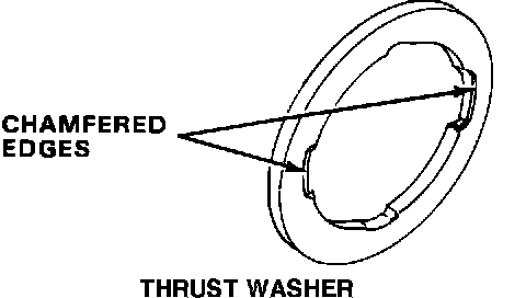 CAUTION: The new type thrust washer for the mainshaft 2nd gear has chamfered edges on its cutouts; the old type does not. Do not use the old type thrust washer.
