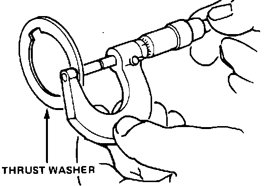6. lf the clearance is outside that range, disassemble the mainshaft and measure the thickness of the 2nd gear thrust washer. Figure out how much thinner (to increase clearance) or thicker (to decrease clearance) the washer must be, then select an appropriate replacement from the following list.