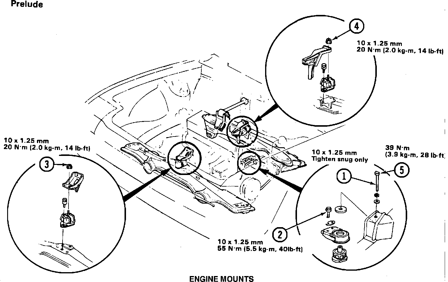 Replace all three engine mounts with the new ones listed below. Tighten the new mounts in the sequence shown on the back of this page.