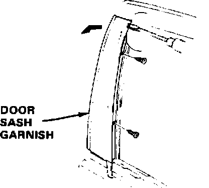 3. Remove the two door sash garnish screws that were under the glass run channel. Remove the garnish by prying up as shown, starting at the top.
