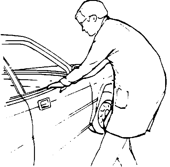 6. Pull (by hand) on the outside door skin at the center of the window opening until it conforms with the curve of the glass.