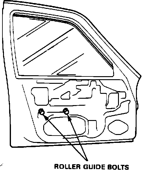 8. Roll the window up half way and loosen the roller guide mount bolts. Adjust the roller guide to a "neutral" position. Retighten the bolts and check for ease of window operation. Readjust the roller guide if necessary.