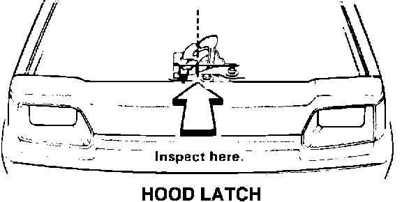 1. Inspect the hood latch: Open the hood, then from in front of the car, with your eyes at hood latch level, check the position of the safety catch. (Look through the top of the latch down along the car's centerline.)