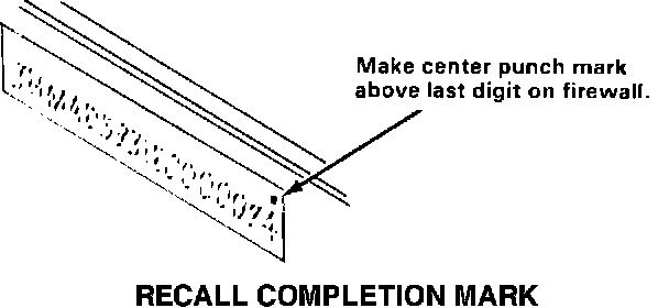4. Center punch a Recall Completion Mark on the firewall above the last digit of the VIN.