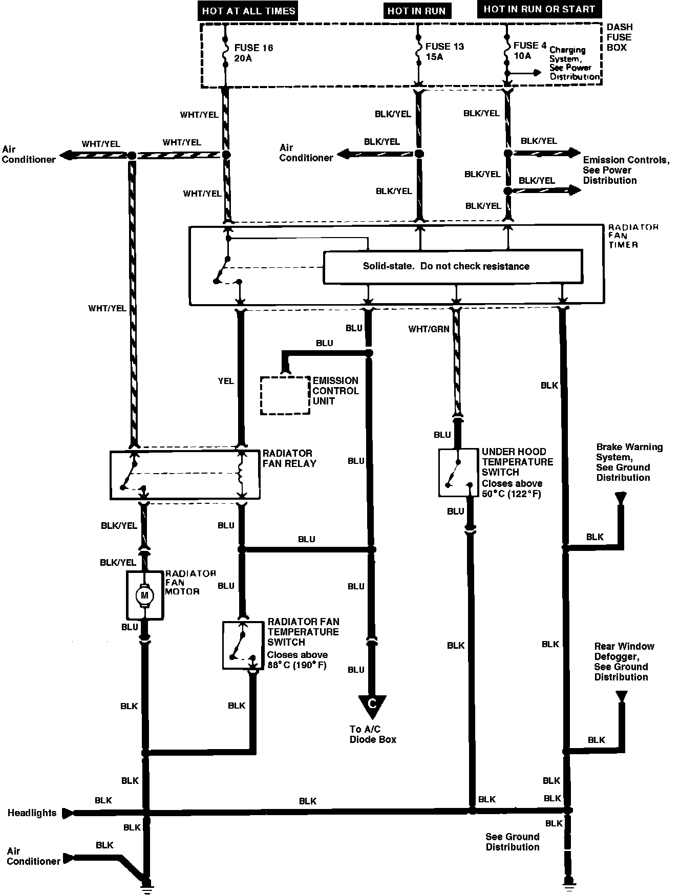 Fig. 75 Cooling Fan Wiring Circuit. CRX W/1500 Engine: