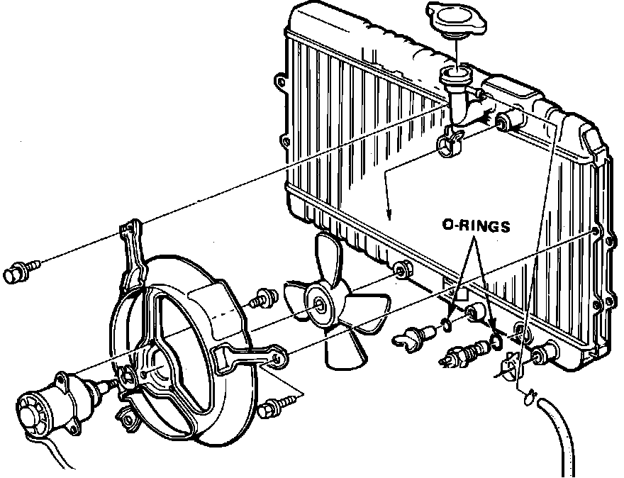 9. Remove radiator mounting bolts and carefully remove radiator from vehicle.