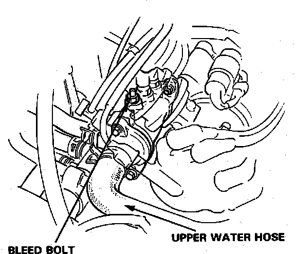 2. Loosen the air bleed bolt in the water outlet, then fill the radiator to the bottom of the filler neck with coolant mixture. Tighten the bleed bolt as soon as coolant starts to run out of in a steady stream without bubbles.