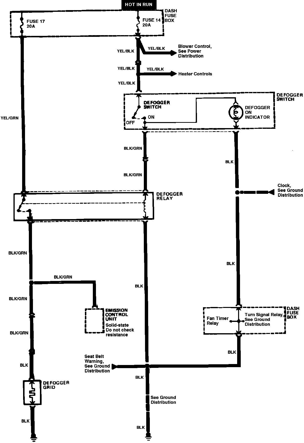 Fig. 92 Rear Window Defogger Wiring Circuit. CRX:
