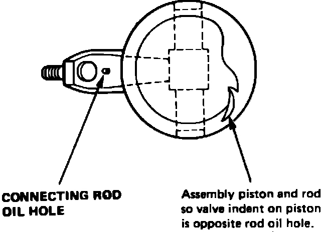 On 1984-87 Civic and CRX, assemble pistons onto connecting rods with valve depressions on opposite side from connecting rod oil hole, Fig. 31. Also note that pistons must be properly matched with connecting rods so that in installed position valve depressions face as shown in Fig. 32, and connecting rod oil holes face intake manifold side of engine.