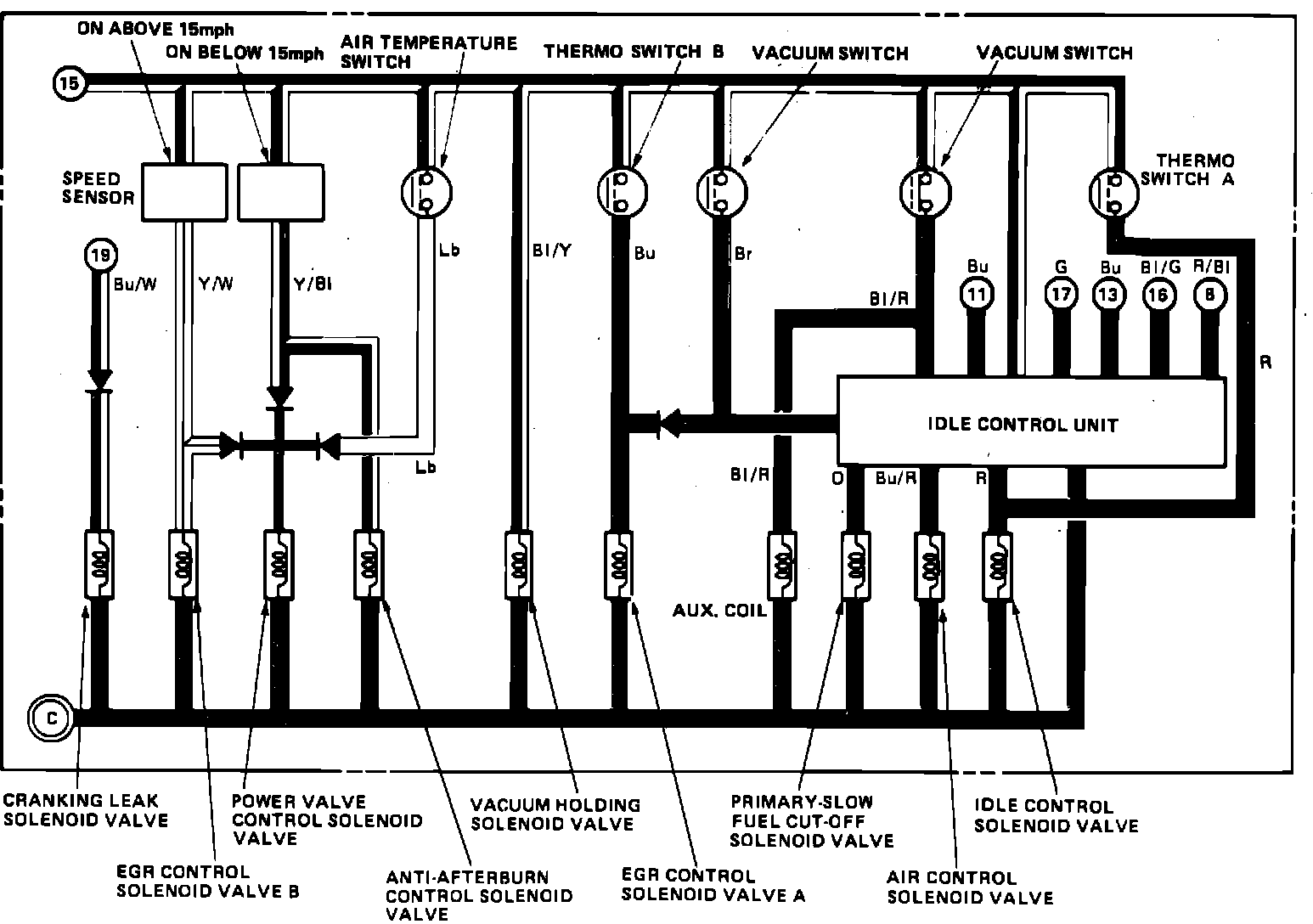 Fig. 59 Emission Control Wiring Circuit. 1984 Civic Hatchback & Sedan W/1300 Engine & 4-Speed: