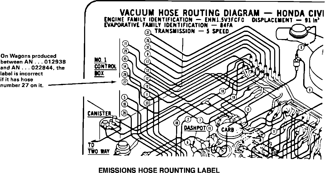 Hose routing label for '84 Wagons from VIN AN...012938 on: