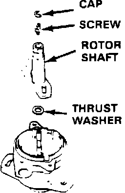 9. Remove and discard the rubber cap, screws, rotor shaft, and thrust washer.