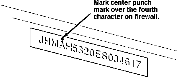 After replacing the fuel pump, center punch a completion mark on the firewall above the fourth character of the VIN.
