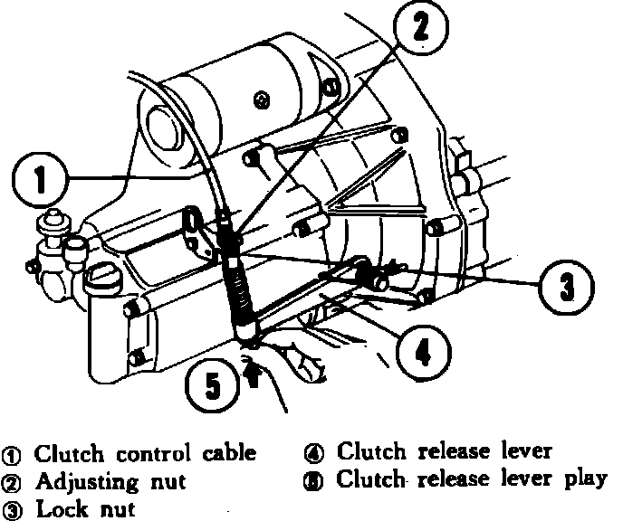 On 1988 Prelude models, a hydraulic clutch control system is used. This system does not require release arm free play adjustment. The clutch pedal can be adjusted as noted in steps 3 and 4.