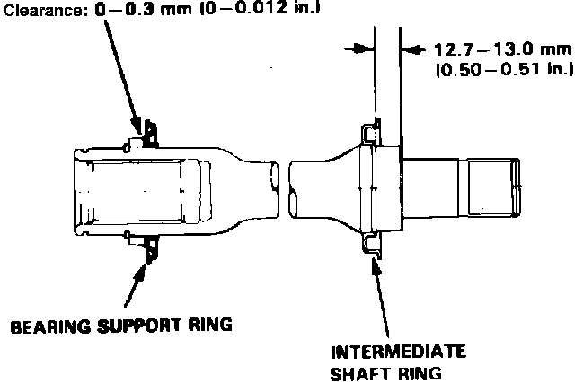 b. Install intermediate shaft ring and bearing support ring on the intermediate shaft. On Civic 4WD wagon position as shown in Fig. 6 using a suitable hammer.
