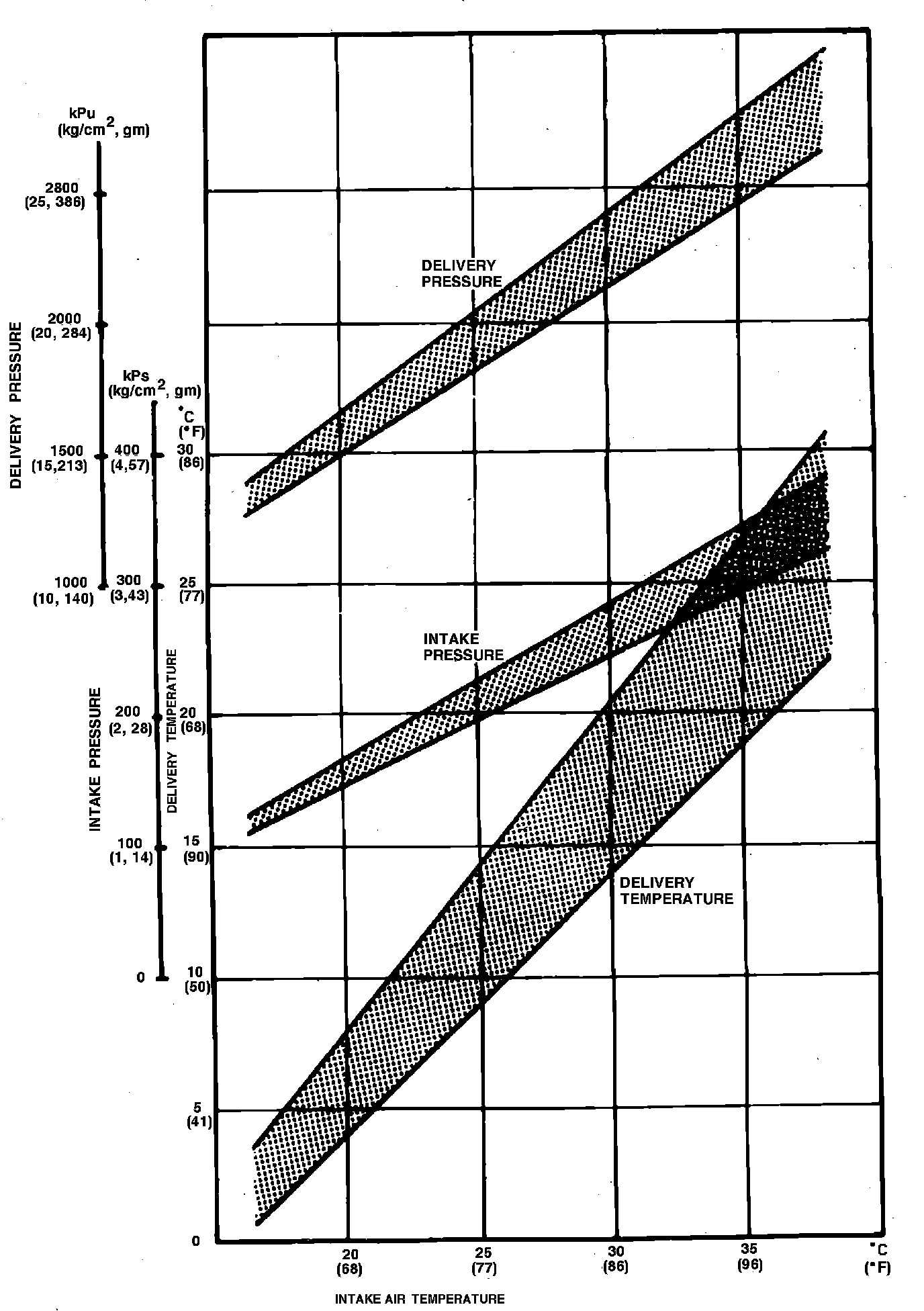 NOTE: Performance test must be performed when humidity is 60 to 80%. If below 50%, the temperature and pressure readings will be lower than the range listed in Fig. 17. If above 80%, readings will be higher.